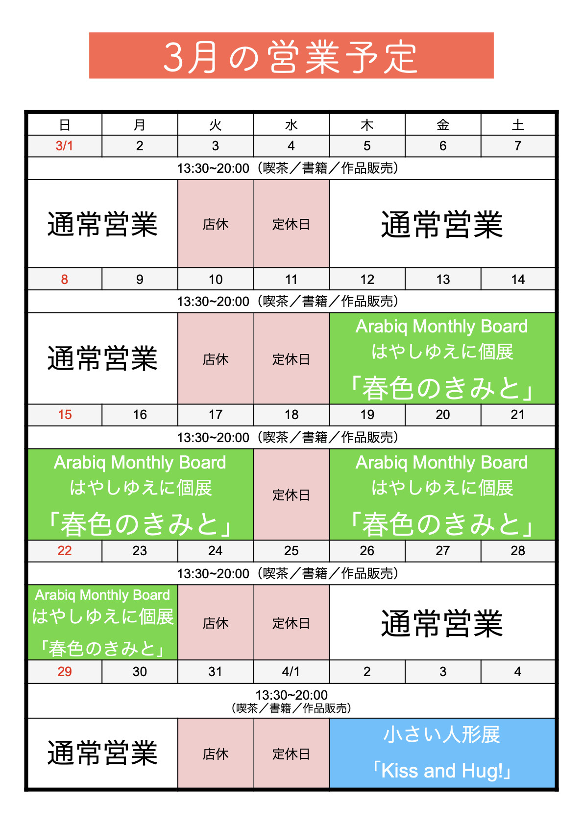 Open/ 13:30~21:00Closed on Wednesdays, occasionally on Tuesday.
